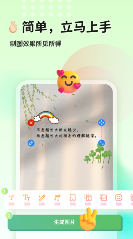 这款软件界面很精致,但是用起来很便捷,只需要轻轻一点就可以制作出精美的图片,软件还支持把不同的图片拼接在一起合成动图,让大家能自己制作有趣的表情包,还可以提取图片上的文字,非常方便。