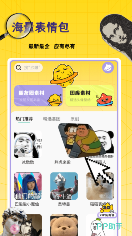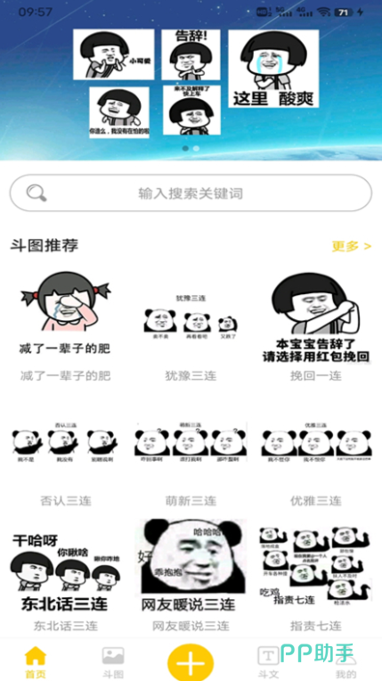 如果不斗图,聊天还有什么意义?这款软件就诠释了什么叫斗图界没有对手这句话,实时更新当下最火热的表情包,并且还可以快速DIY制作表情包,只需要点击几下就能出一张全新的表情,斗图怎么输?