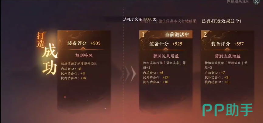 而且装备也分为4个等级,分别是蓝红紫金四个级别,如果打造的特技属性不太好,玩家们可以选择不继承,继续进行打造,而且如果按照小编说的这个【幸运值】办法进行打造的话,出蓝色品质的概率是非常低的,至少可以保证打造出来的特技会有80%的概率是红色的,如果进行10连强化的话,出紫色概率也是非常高的。