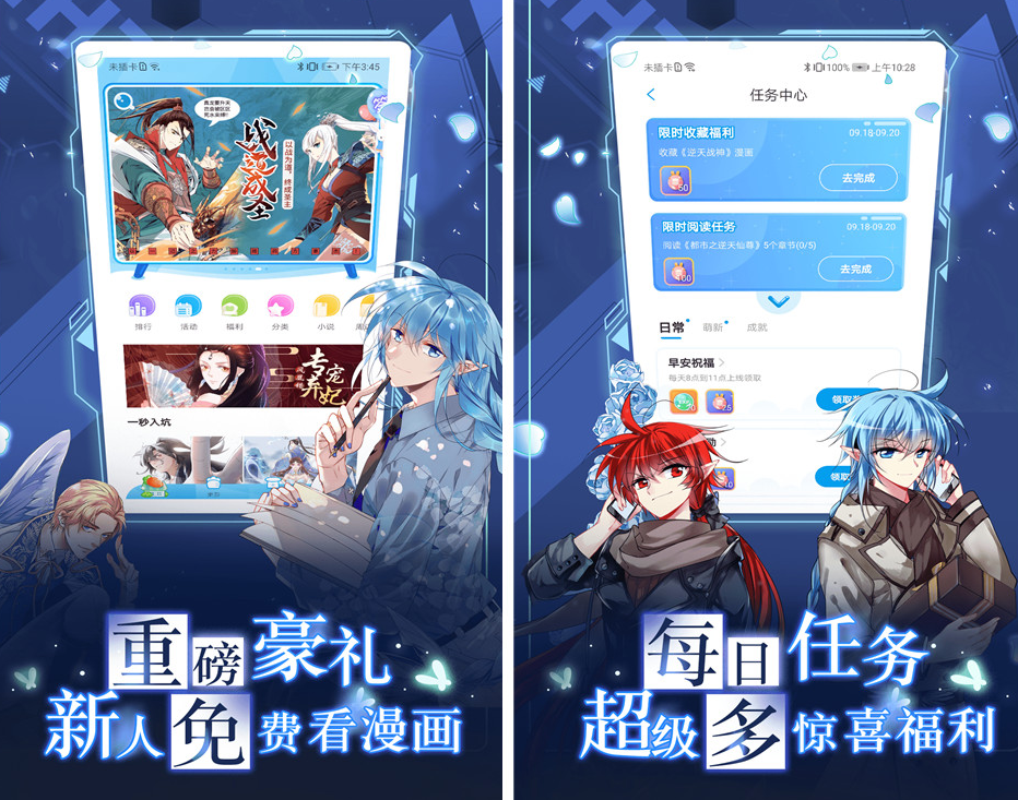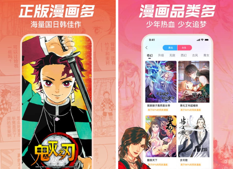 这是一款主营高品质漫画的app,软件里的漫画拥有高清全彩的画面,让用户在拥挤的公交车上都能看得津津有味。软件分为少年漫画、少女漫画和青年青女漫画,在少年漫画区中用户可以看到热血、悬疑、修仙、系统类的漫画主题,而少女漫画区中提供恋爱、穿越等题材,无论是学生党还是上班族,您一定能在这里找到属于您的漫画!