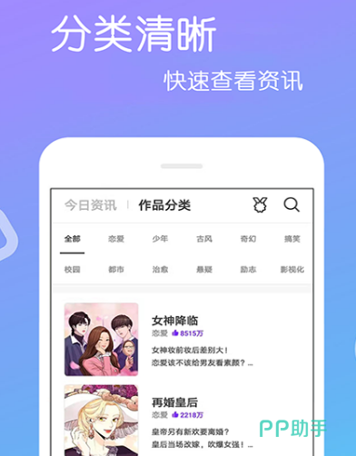 其实漫画是一种文化形式,适当的观看漫画可以帮助我们提高文化素养,另外也能让我们了解到虚拟的世界,以及不同的文化背景和历史事件。在凯漫画当中,每日都会时时更新穿越、热血、恋爱分类较为齐全,各种全新漫画应有尽有,为大家提供正版版本,只有自己想不到的,没有找不到的。