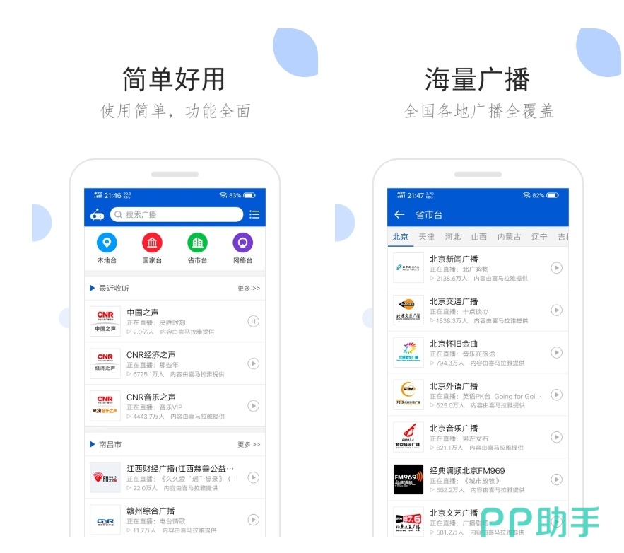 可以让大家用这个软件收听各种广播电台的内容,相声小说、有声读物、儿歌、绘本、睡前故事和睡眠音乐等等全都有,各种好听的音乐都有助眠的效果,可以让大家在跌宕起伏的故事剧情当中或者是美妙动听的音乐当中进入梦乡。