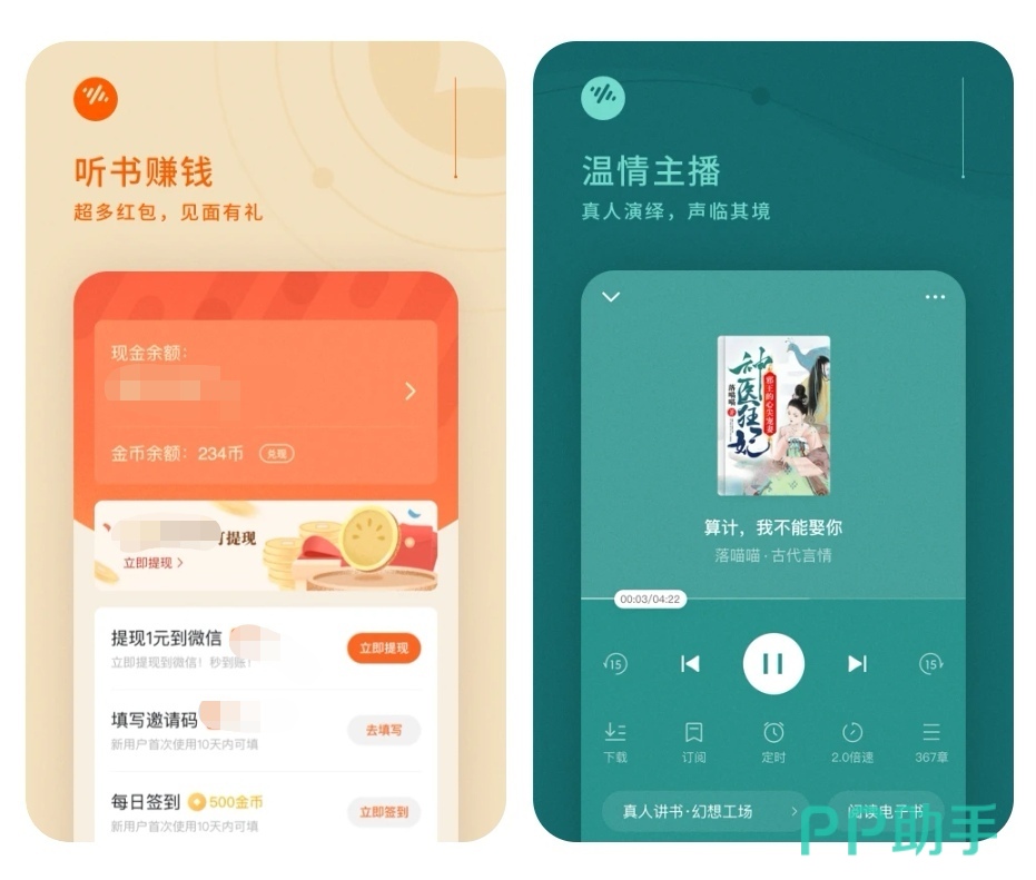 帮助大家解放双眼,轻松的享受听书带给你的乐趣,8000多万部正版的书籍全都配有了声音,也有很多的学播音主持的小伙伴在这个软件当中录制有声读物进行发布,从中还能赚取到一些生活费。