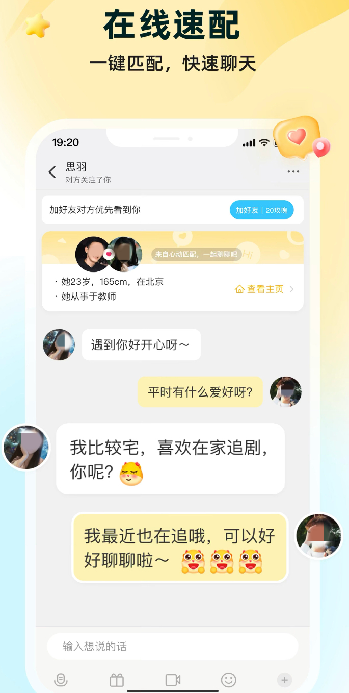 这款社交app里有很多有趣的交友方式,在线匹配功能可以随时畅聊。在发现里可以通过筛选和20多个兴趣图标帮找到志同道合的朋友,而且在兴趣社区里还有很多有趣的话题和超多礼物等着你。
