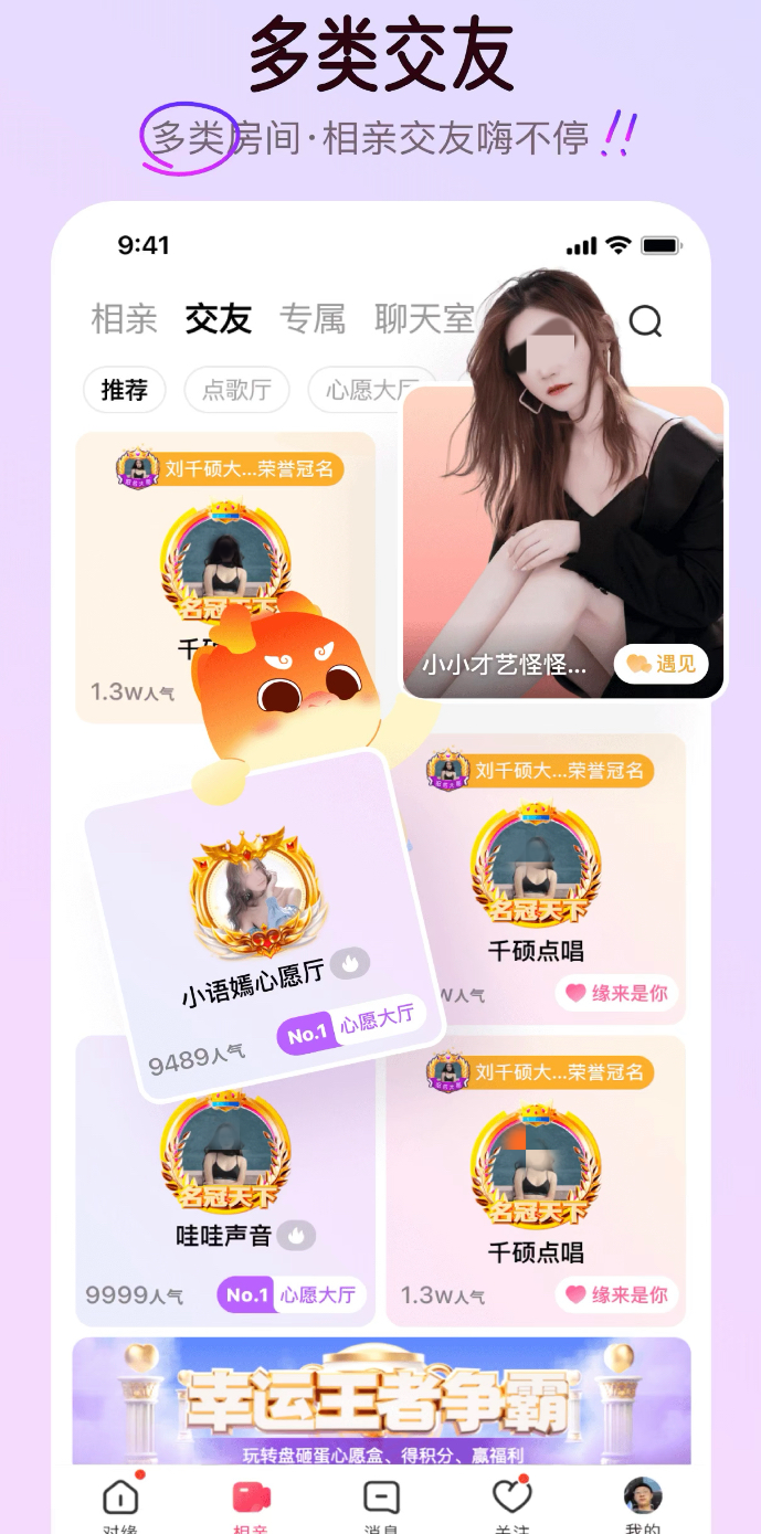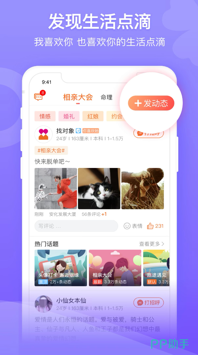 一款可以满足你各种需求的app,无论是想交友还是谈恋爱,或者约会,都可以来这里!应用主要以社区和话题交友为主,一个有趣的话题往往可以使交流更加顺畅无阻,交友也十分轻松。