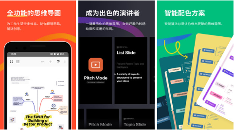 这款软件的特点是功能全面且精细,几乎可以满足用户所有与思维导图相关的需求。就比如这款软件中的“演说模式”即可实现一键生成PPT模式的演说文稿,让思维导图的知识脉络更加清晰和深刻,自然也就更有说服力。