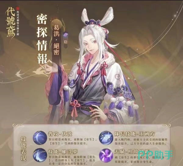 众所周知,代号鸢在最新的一次更新中,加入了许多英雄人物,葛洪作为新英雄受到大家的关注,因为是新英雄,所以大家对葛洪的实力和各项技能都不太了解,葛洪属于一名隐秘性强的攻击型英雄,他的最大特色是诡辩隐身性,在一定程度上给敌人带来了极大的伤害,由于他自身的属性,他的攻击会通过被动触发技能,然后通过转移将自身伤害一部分转移到敌人身上。