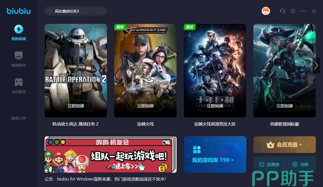如果大家喜欢高达系列的作品,那么就应该来好好看看了,今天要说的这款游戏大家应该也不会陌生,它里面拥有着超级刺激的战斗模式和超快的节奏,很多朋友都不知道高达激战任务2卡顿怎么办,如果说在各位实际的游戏体验环境中,自己的网络不给力,经常会遇到掉线或者是闪退的问题,那么肯定是不行的,所以这时候就需要大家去用到biubiu加速器来帮助自己去稳定网络,尤其是这类没有国服的游戏,需要的就是专线加速工具来帮助自己去稳定网络,而它恰好就是其中之一。