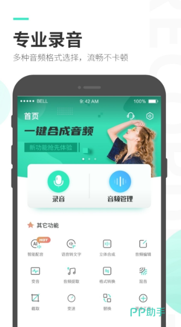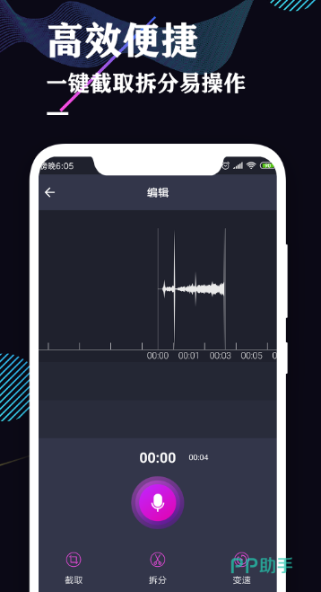 专业录音设备,让你的手机变成强大的录制工具!一键录制自由选择,可以录下你所听到的各种声音!快速操作剪辑,截取、变速都能实现,不用再额外下载其他手机软件调整音频,自由删除、自由变速,让你的录制更轻松方便!