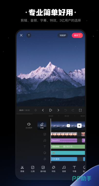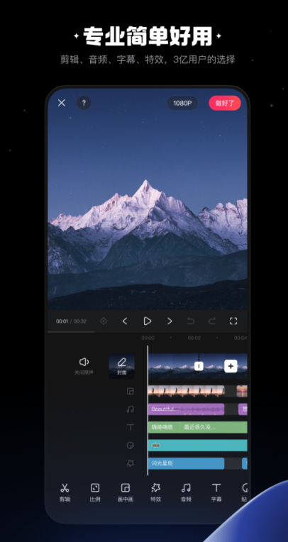 这款剪辑软件是全国超过十亿用户的首选,适用于不同水平的用户,无论你是老手或新手,只要你会拍视频,就可以使用它来剪辑出高质量的视频作品。此外,搭配可拆卸的手机镜头,小影用拍摄的视角为你提供非常棒的视频体验。对于初学者,小影提供了全面的新手教程,只需跟随教程的步骤,就能轻松制作出优质的视频作品。总之,小影是一款易于操作且功能全面的剪辑软件,让你在创作过程中得到更好的体验和效果。