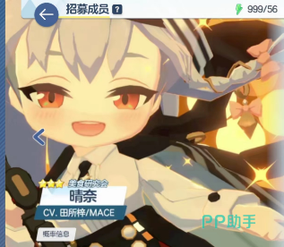 第二个非常特别的角色就是我们的美食研究会中的晴奈,这个角色在游戏中人气非常的高,而且前期在没有强力卡片的时候可以使用这个角色来进行主线推进,或者竞技场比拼也是非常合适的,但是需要注意的是这个在后期主线的时候会比较乏力,可以把晴奈作为后期主要竞技场角色来使用。晴奈也是一个三星初始角色,主要是以输出为主要,获取方式也比较简单,这个角色在长期招募卡池中存在,玩家们只要使用120个钻石就可以进行一次招募。如果招募不到也没有关系,在推主线的时候也是可以进行收集的。