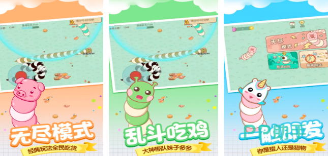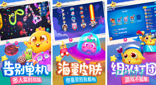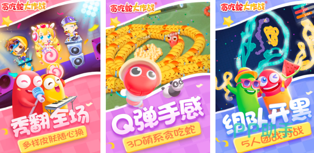 《贪吃蛇大作战》创建的非常精美华丽的卡通风格,需要玩家灵敏的控制好小蛇来进行移动。千万要小心其他的贪吃蛇,不要撞击在一起,很容易会导致游戏失败。需要你通过努力不断的成长,让自己的小蛇体积越来越大,这样才能够秀翻全场。超多皮肤随便更换,汇集了超多可爱的小蛇造型,打造q萌可爱的画风,非常令人上瘾的一款游戏。随时可以逆袭,让你成为最大的贪吃蛇。灵活的参与作战,随意的将其他的小蛇进行吞噬。甩起贪吃蛇的尾巴,就可以击打其他的贪吃蛇玩家。通过开黑的模式,和其他的玩家一起进行比拼。也可以邀请好友创建房间,自由的参与一场竞技挑战,体验无穷无尽的欢乐。