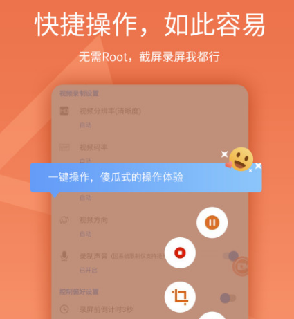 这个软件不仅可对手机屏幕进行录制,也可以是一个手机录制、录视频、录屏幕等等的软件。集屏幕录制视频编辑于一身,能将录制出来的视频展现的超清无卡顿操作,非常简单,功能包括支持录制前置摄像头以及音视频同步录制。还可将自己录制的视频分享到朋友圈或者是QQ等等,让更多的人发现自己所录制的精彩视频。