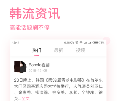 每天都为大家更新大量爆款电视剧,全新风格的界面,带给用户全新的观看体验,同时还可以根据用户平时观看韩剧的类型,进行系统化推荐,并且还可以离线下载视频,出行时观看视频节省流量。