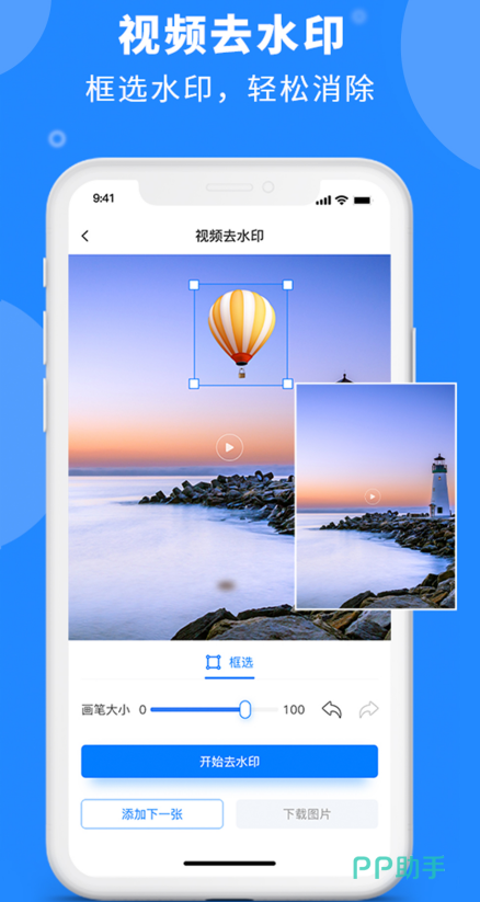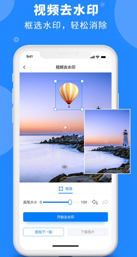 这是一款支持短视频、图片去水印的编辑工具,用户只需要框选水印所在的位置,软件就会通过核心算法智能识别水印具体结构并去除,去除水印后的视频或图片也非常干净。软件提供了添加水印功能,用户可以在照片或视频上留下专属的文字或logo,创造专属作品。处理完的视频和图片将会保存在用户的相册中,用户可以将文件分享至其他平台,任意分享更便捷。