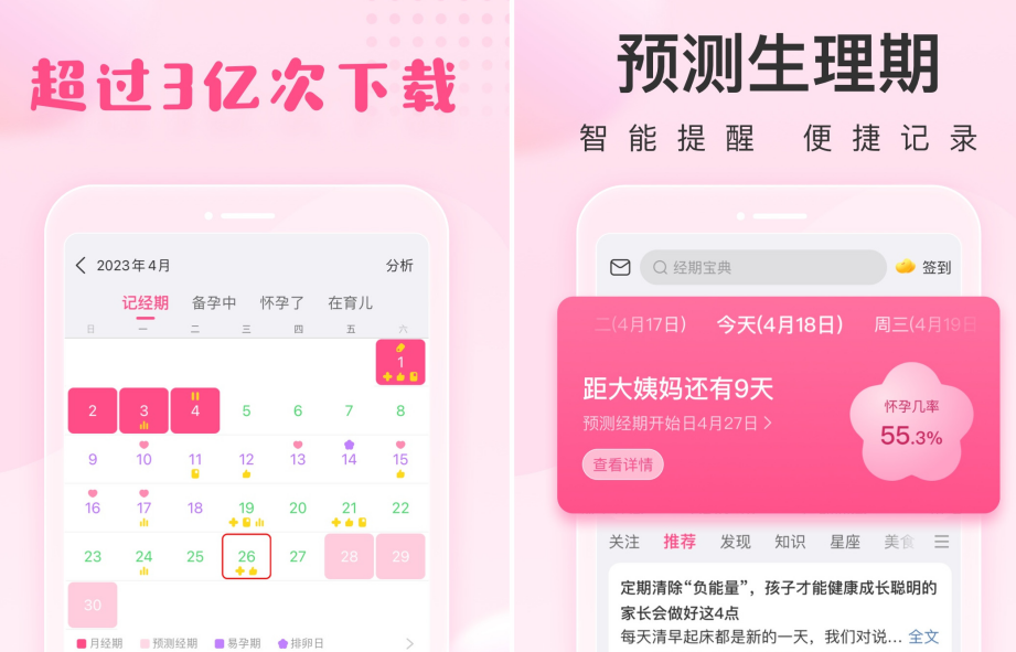 这是一款比男朋友更懂得呵护小仙女们的生理期健康、调理身体的软件,拥有智能的生理期提醒模式,会根据小仙女们的历史数据预测下一次生理期的时间,并提前提醒,避免忘记生理期的尴尬。软件还可以根据用户的需求,切换为备孕、怀孕和育儿模式,增加准妈妈们的孕产知识,并提供孕期提醒。