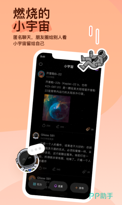 这是一款开放式的移动社交应用主旨就是要给用户提供全方位沉浸式的社交体验,在这里大家可以通过这款软件认识身边有趣的人,并且通过动态资料来了解身边的朋友。