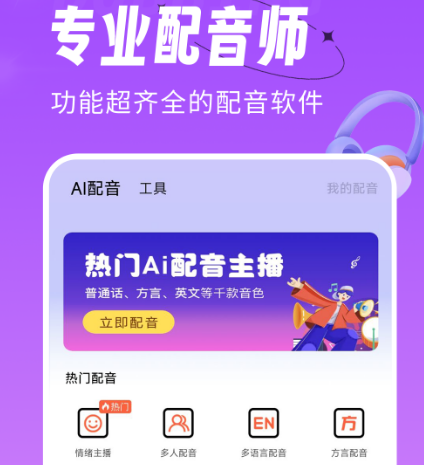 该软件就是一个可提供真人配音的软件,除了非常的好用以外,也具备强大的功能,比如AI配音,多人配音、方言配音、真人配音等等。在真人配音的时候,有很多从事配音工作几十年的人,甚至是国家级的配音员,如果想要进行广告配音或者是公司宣传片的配音,就可利用这个软件来找到更适合的人物进行配音,还可对视频进行编辑,完成以后更能一键导出,分享给好友甚至是很多的平台。