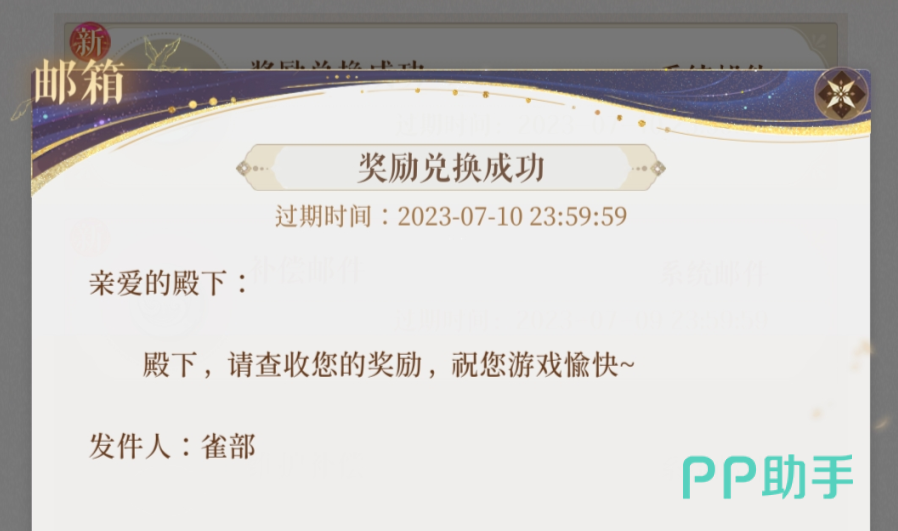 至此,就顺利兑换成功了,值得一提的是兑换完之后奖励会给到邮箱里,而且大多数邮件是有存储期限的,建议是领了就直接快速用来,以免忘记过期了。