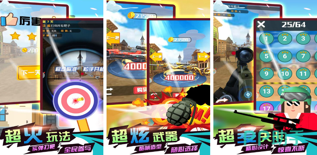枪神狙击手是款火遍全国的竖屏打靶类小游戏,采用3D的画面渲染技术,将射击的场面打造得极为逼真。游戏里的靶子种类也是丰富多样的,僵尸、小动物都会成为你练习枪法的靶子,超多写实的狙击类武器给玩家带来了真实的射击感受,难度不一的各种关卡也等待着你来挑战,各位狙击高手们快快行动起来吧。