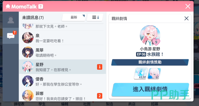 这里建议大家优先去触发星野的羁绊,她的羁绊只需要解锁rank9即可进行触发,并且星野羁绊给的这个动态大厅是一间水族馆,非常的漂亮,而且该角色本身也有着不俗的实力,可以一边推图,一边去培养亲密度。