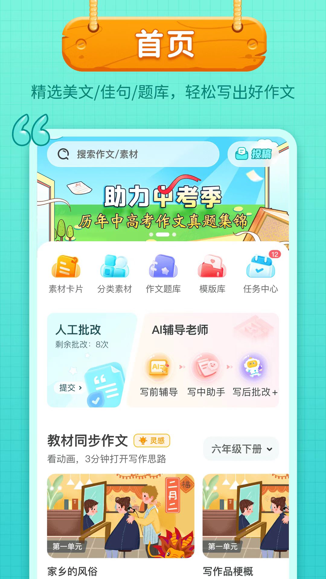 作为权威的完全工具,就看APP可以帮助大家进行中小学作文的查看和发表,最重要的是还有历年历届的中考,高考满分作文,以及各种优质的作文范文,用户可以随机在这里搜索,自动生成满分作文,查看相关题材的满分作文,感受不一样的,写作内容。