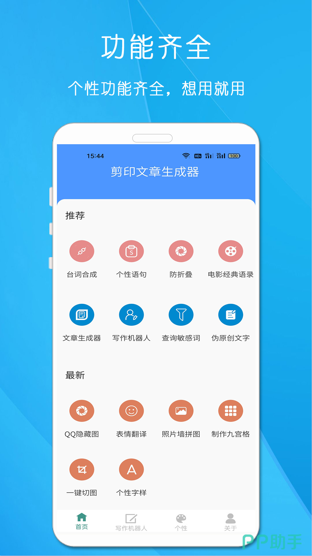 作为一个文字生成工具,用户可以输入自己感兴趣的关键词之后通过智能化的分析,就能够快速生成个性化的文章,甚至还要能够拥有个性化的字体和表情翻译,是一个制作原创文章的有趣工具。