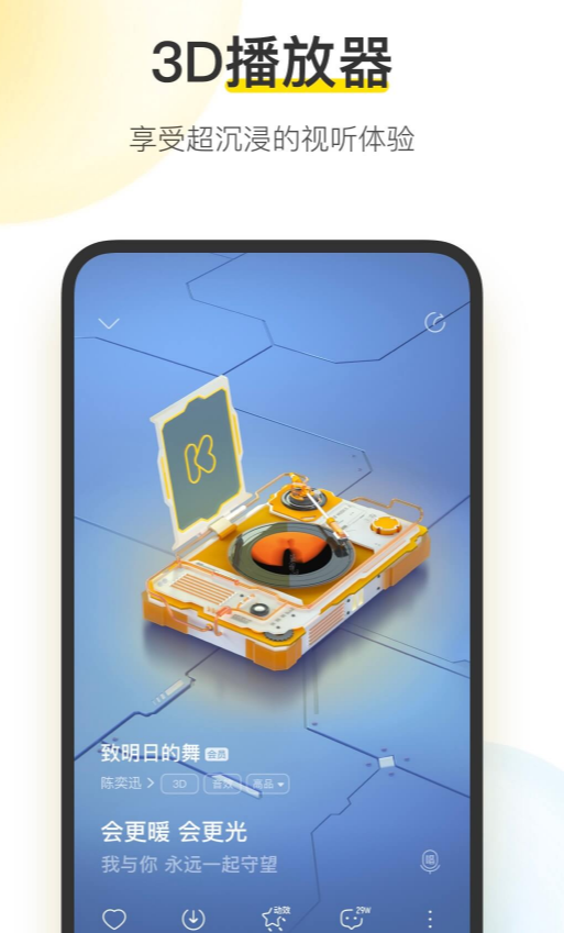 拥有海量的音乐曲库,四千万正版音乐,覆盖了海内外热门歌曲,极光音效让各位小伙伴在听歌的时候更加享受,更加至臻,还可以邀请好友进入云包厢,一起玩转5G现场,感受专宠视角,独享宠爱。
