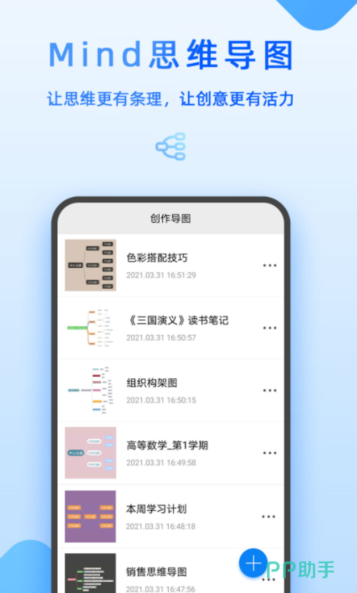 Mind思维导图可以让大家的思维更加有条理性,让创意更有活力,丰富的导图模版,大家可点击一键使用模版,制作出漂亮的思维导图,你的导图你自己做出,样式随意挑选,强大的编辑系统随用户控制,专注思维,捕捉超强的灵感。