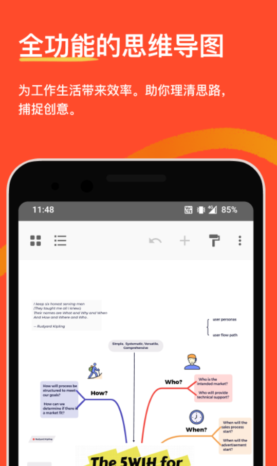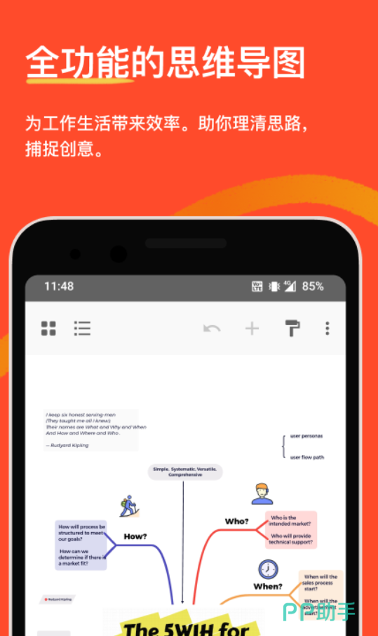 头脑特别乱的小伙伴可以选择XMind思维导图app来帮助自己整理思维导图,从简单的框架梳理直到幻灯片演示,可为大家提供高效率的导图体验,里面拥有极简设计,能够流畅体验,XMind集强大的功能为一身,无论是在智能配色方案,手绘风格,都能够给大家带来不少优势,为工作者带来效率,助你理清思路,捕捉创意。