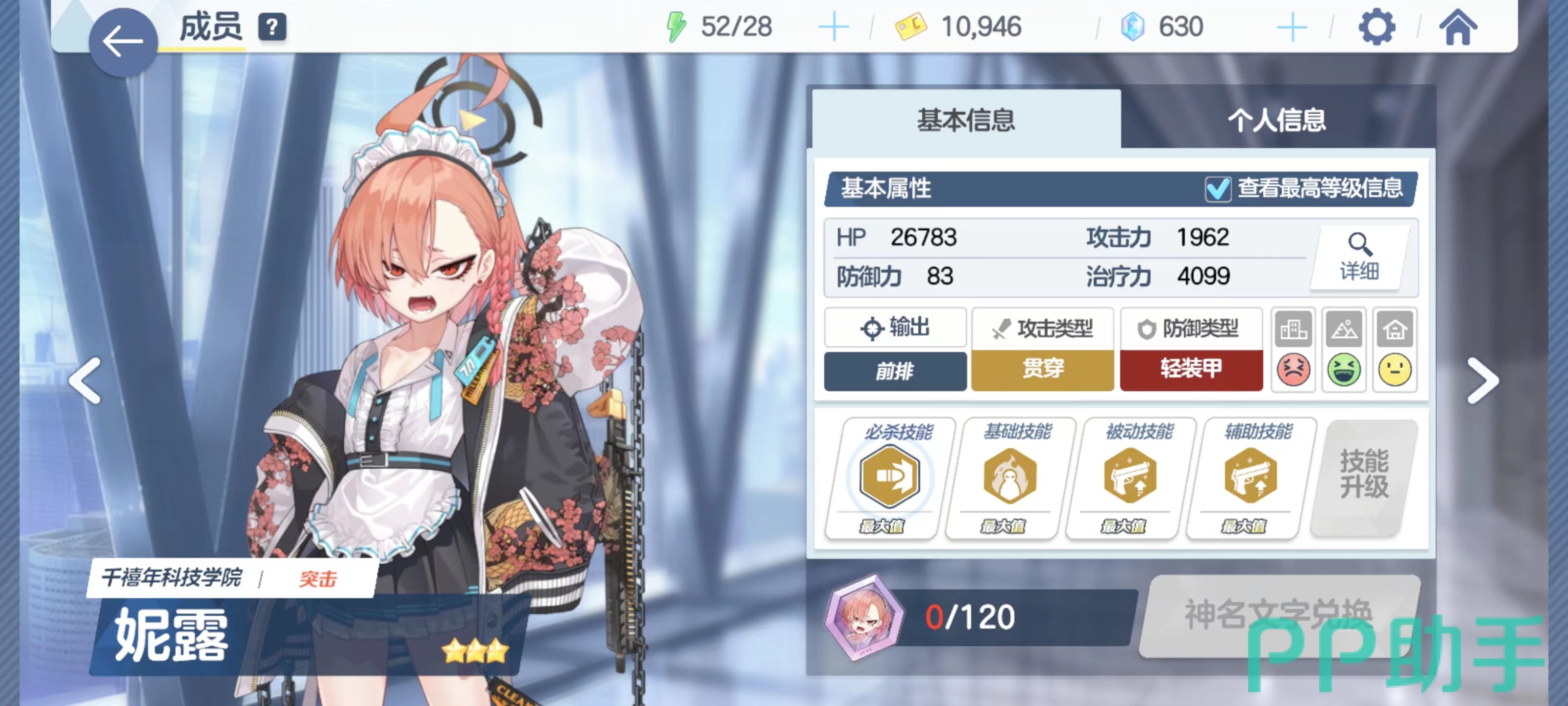 妮露:CC社团的三星角色之一,她被定位为前排输出角色,满级时拥有2W5+的血量和1962的攻击,虽然都不算特别突出,但在实战中还是能有攻防俱佳的表现。