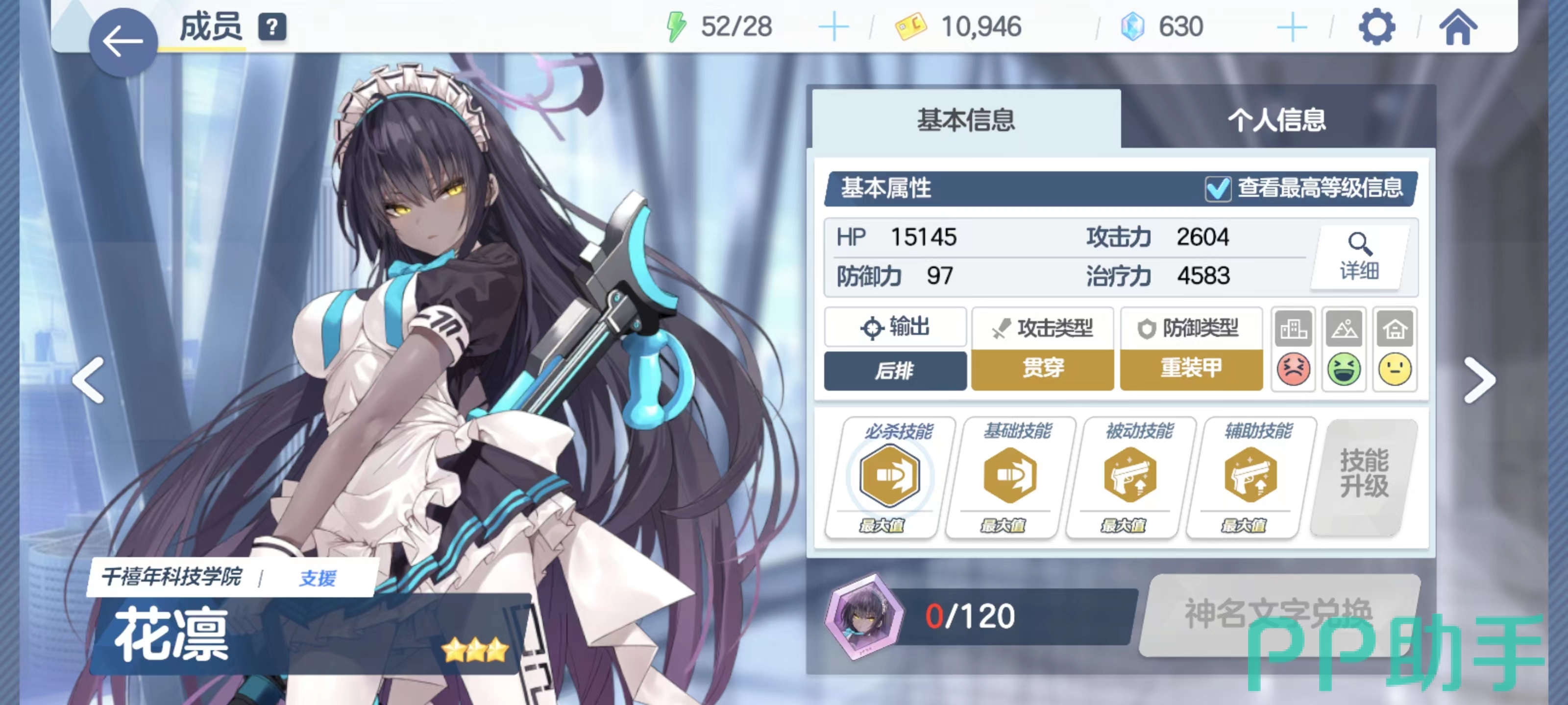 花凛:同样是CC社团的三星角色,本身是后排输出的定位,拥有2604的攻击和15145的生命值,防御和治疗力对比同位置的其他角色也不落下风,她的技能与其人设一样低调实用,普通技能是每四十秒造成一次单体伤害,并有50%几率提供3.1秒的眩晕,EX技能则是对单体敌人造成687%~1099%攻击力的伤害,并对超大型敌人还有481%~625%的额外附加伤害。另外她的被动技能和辅助技能还可以分别增加自身攻击力和全体友军的攻击力,两者可以叠加,如此一来,花凛的高攻击优势将更加明显。