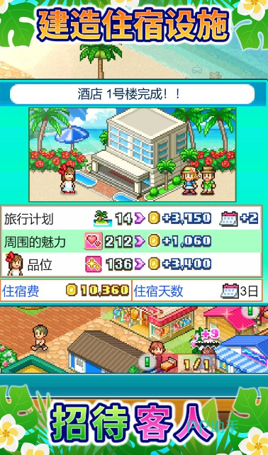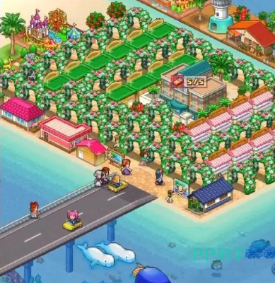 首先是第一章,玩家们可以清楚地看到整个度假区采取的是很规整的正方形形式,但是需要注意的一个点是,左下角的寿司店以及甜品店的搭配,这两个饭店放在一起是有着独特的加成的,同时,这座桥采取的也是“T字”型的修法,这样可以更好地与主岛屿进行连接。