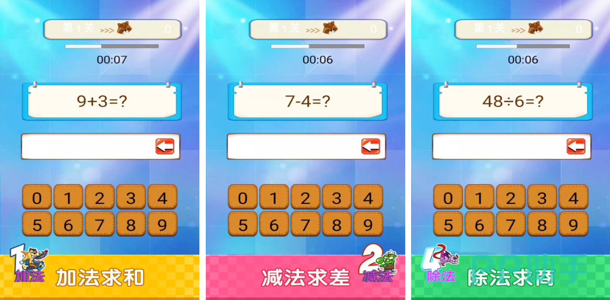 这是款专门给幼儿园、一年级的小孩子设计的数学游戏,充满趣味的画风和简单益智的玩法让人爱不释手,游戏关卡涵盖了一些数学方面的内容,比如几何学、加减法等等,小朋友们在闯关的过程中潜移默化地就记住了一些数学知识,甚至一些跟数学有关的公式也会在游戏中出现,色彩鲜艳的画面和多样性的玩法让小朋友们不会觉得乏味。