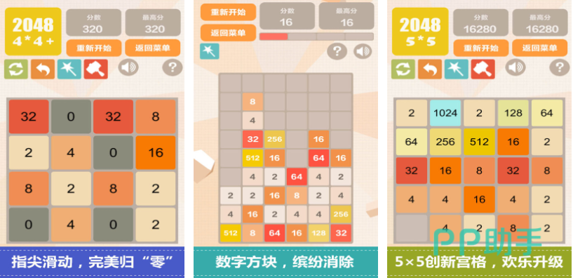喜欢玩合成游戏的玩家应该对2048不会陌生,这款由数字方块组成的合成游戏玩法虽然单一,但合成数字的过程非常解压有趣,丰富的模式也让这款2048游戏更加耐玩。游戏甚至增加了高难度的5×5新玩法,超高的难度考验着玩家的耐心和观察能力。这款2048游戏有着计分制的机制,这样的机制成功激发了小朋友们的求胜心。