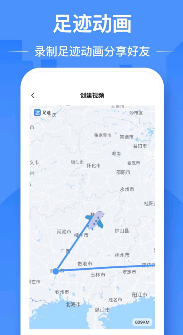 旅行的精彩不仅限于在各种景点,就算是在路上的时间也特别宝贵,而它就能将你前往和返回的各种路线给标注下来,根据选择出一个相关的交通工具然后生成好玩的轨迹视频,每一次出行的记录不用手动录入自己就能保存给生成,中途要是路过其他的城市还可以增添其他的中心点,要是喜欢以骑行形式旅行的话就特别好。