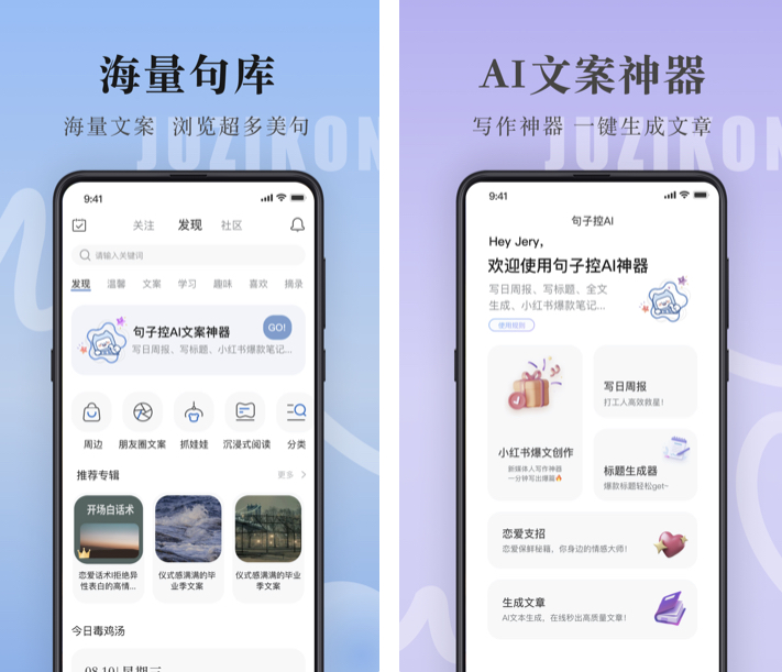 这款app的句子分类很全面,早安语录,文案馆,诗词,朋友圈文案,心情,短知识,签名等一应俱全,你也可以在这里分享喜欢的句子供大家一起欣赏,这些优美的句子图文并茂,让你沉浸式阅读这些好句,快来这里体验体验吧。