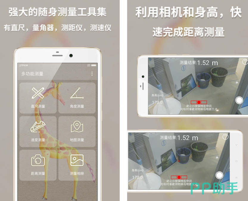这一个实用的工具箱里面有强大的随身测量工具集,包括直尺测量、速度测量、角度测量以及距离测量等,利用相机摄像头与身高,快速完成两点之间的测距。通过相机捕捉物体追踪,测出移动时的速度,还有各种可以测出物体间角度斜率的小工具,测量的数据支持公制与英制单位切换,更方便你定制各种家具装修。