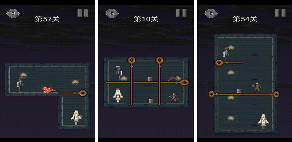 这个游戏中玩家将会踏上一场拯救公主的冒险旅程,但是要想拯救公主需要玩家付出一定的脑力,场景看似简单其实对于玩家来说是非常有挑战性的,首先需要破解游戏中的难题,而且在玩家和公主之间还会有敌人,战胜敌人才能顺利的找到解救公主的办法。
