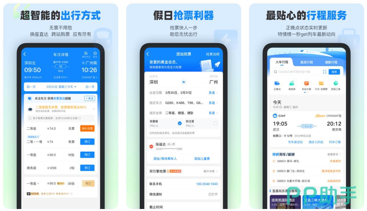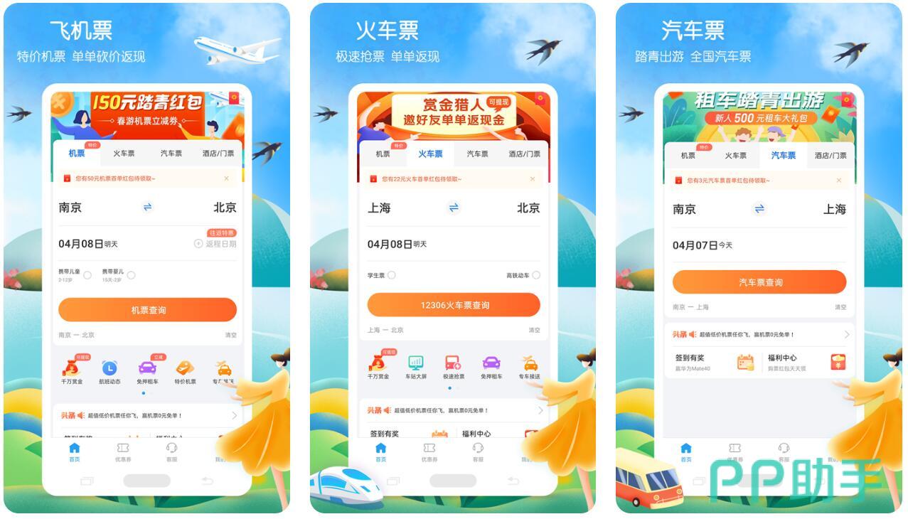 用户在使用本款APP的时候,不仅可以完成针对火车票的购买,各种飞机票以及汽车票都能够轻松预定。使用的过程当中还可以获取到大量出行攻略,不同地区的景点也会在软件内进行推送。对于喜欢出门的用户来说,软件的大量资讯内容反而会为大家起到正面的帮助。