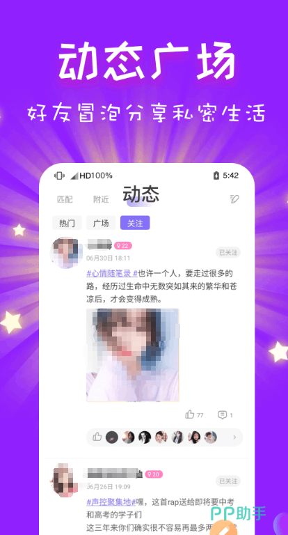 在这里,你可以通过声控找到一个语音聊天的好朋友,或者作为单身狗找到适合你的对象。我们有强大的CP匹配系统,会根据你的信息特点为你找到最合适的CP。同时,我们还提供附近匹配功能,让你能够更迅速地找到身边的好伙伴,发展成为现实中的伙伴关系。如果你觉得一对一的交流有些仓促,不妨尝试动态广场和多人房间,通过更开放的环境,在大家的独白中找到那个让你心动的人。无论是寻找好友还是对象,这里都能满足你的需求。快来尝试吧!