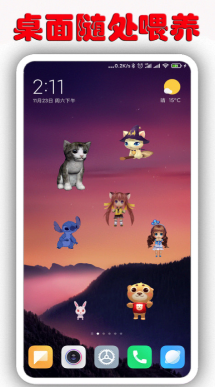 如果你是一个喜欢小动物,经常养小宠物的手机使用者,那么这款软件你一定不能错过。软件中有超过30款的小宠物等着你来领养,而领养的小宠物并不是送到你家让你养,而是送到你的手机桌面上陪伴着你,每一款宠物都十分可爱,有皮卡丘、小猫、小黄人等各种各样的宠物等你领养。宠物在你桌面上晃动很是给人带来好心情,你还能拖动小宠物到合适的位置,让你的桌面看着不再单调。