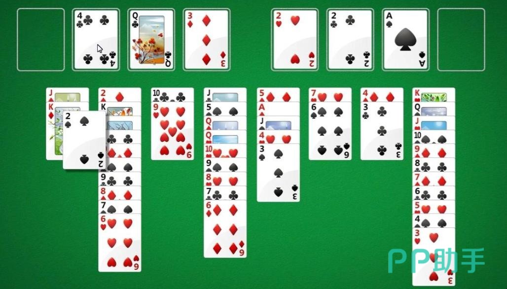 游戏开始时,玩家会看到一个由八列纸牌构成的牌局,每列中第一张牌朝上,后续的牌依次叠放在上面。牌局中有四个基础牌堆,初始时为空。玩家可以将牌局中较小的牌叠放在较大的牌上,只要它们的花色是相反的,并且它们的点数相差1。玩家可以将列末端的可移动牌移动到其他列中,前提是这张牌与目标列的末端牌符合叠放规则。如果一列被清空,可以通过将某张牌移到该列开始新的堆叠。当牌局中的所有牌都被移动到基础牌堆中并按照花色和顺序堆叠时,游戏胜利。