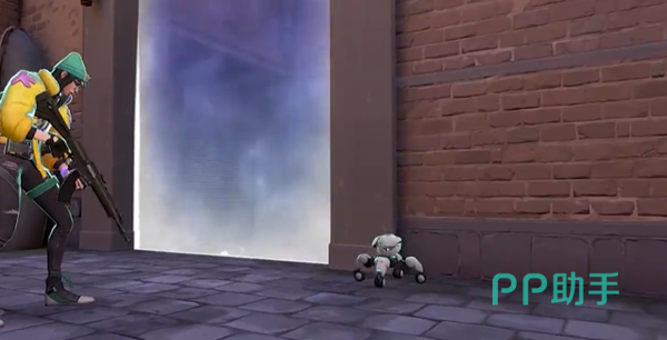 然后是Q技能自动哨兵,按下Q后进入到部署阶段,哨兵同样也是能够隐形的,可以自动追踪进入范围内的敌人并且跳起一定高度后爆炸给敌方造成易伤效果,在易伤效果生效的期间内攻击到敌人可以造成双倍伤害。但是这里要注意一下,哨兵只有获取到敌方视野才能够出发警报,如果敌人是隔着墙,距离再近也无法触发,游戏中这样依靠视野来触发的条件有很多,大家要习惯。这个自动哨兵是可以检测到一些进入隐形状态的敌人的,比如芮娜,所以适用性比较广。这个哨兵有着生效范围,玩家超过范围后会失效,重新回到范围内就能够激活,或者进行远距离回收,长按Q键就可以完成操作。