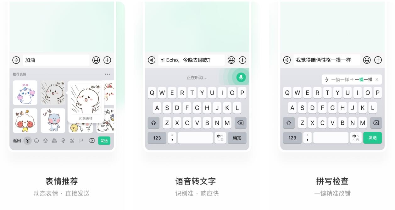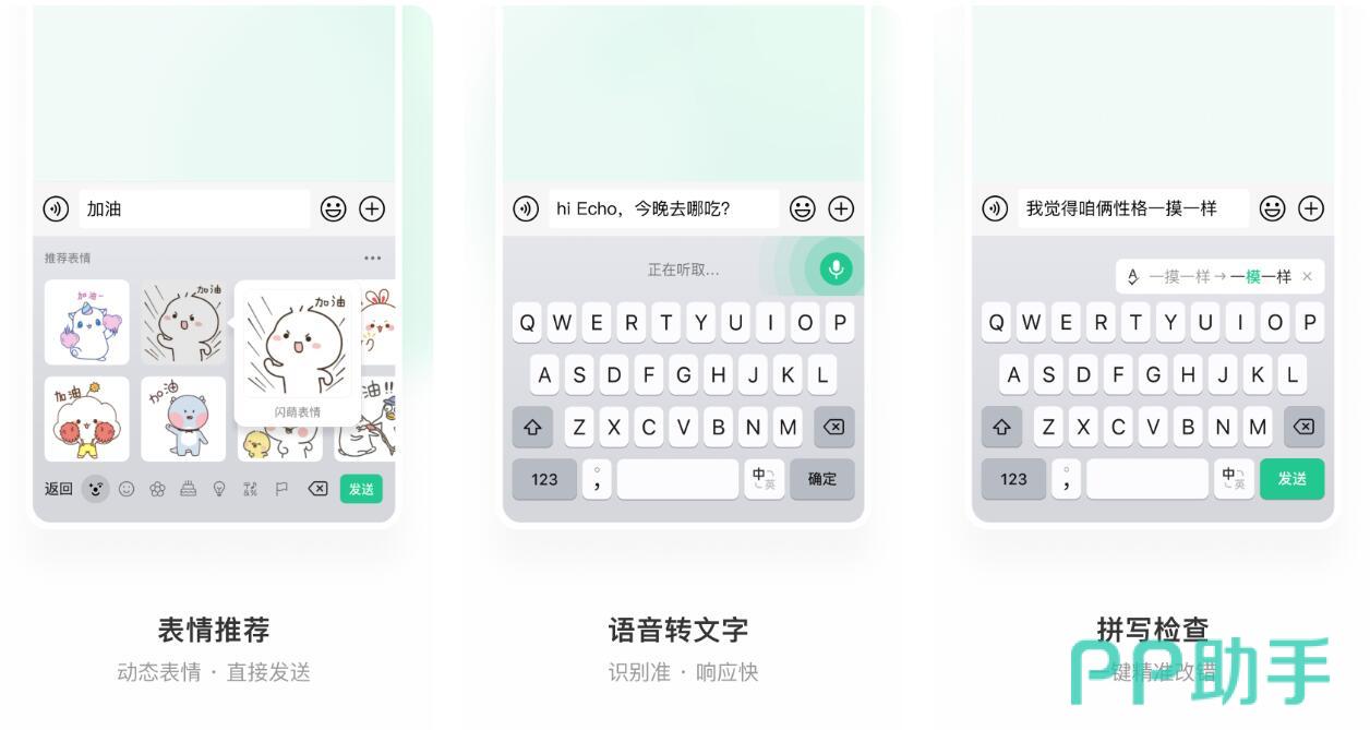 各位在使用这款软件的时候,可以享受到独特的拼音输入模式,app也会智能化的针对不同的词语和句式进行补充,同时各位也可以利用首个字母的方式来提升打字速度。并且,软件目前也开通了有趣的斗图功能,大家可以自由添加喜欢的斗图素材,聊天的过程当中,一旦输入相关的词组,系统也会为大家展示符合条件的表情包来发送。