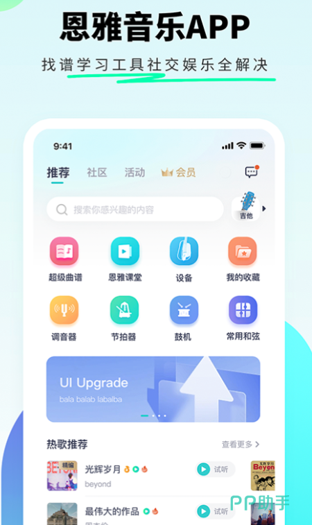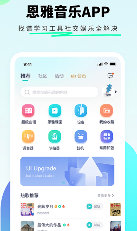 在这款软件里大家可以来一场音乐派对!软件不仅有很多可以当作伴奏的好听歌曲,还有大量和用户一样喜欢音乐的朋友在音乐社区中交流,大家可以组建一支自己的线上乐队,演奏出你最擅长的乐曲!