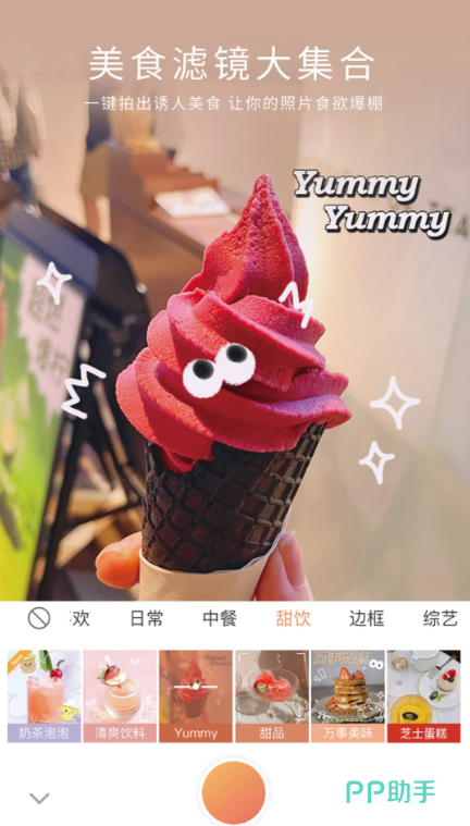 这是一款适合美食爱好者以及自拍爱好者的相机app,美食爱好者可以在拍摄可口的美食时添加上美食专属的滤镜,而这些美食专属的滤镜在添加后让你的美食出片时看着更加的可口动人。自拍爱好者在拍摄自己的美貌时也可以选择喜欢的滤镜,软件中还有各种肤质以及不同的美颜供拍摄者使用,让该软件下的你更加的精美。在软件中还有大量的贴纸资源用户在拍摄后还可以挑选一些贴纸贴在原图上让原图更加的多彩。