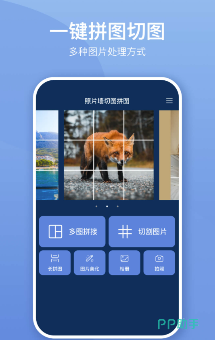 该软件能对各种各样的图片完成不同的操作,有时候一张图片感觉不够表达你想分享的内容你可以选择软件中的拼图,将多张图片拼接在一起,或者你不想发送整张图片给别人,你也可以使用该软件进行切图,将一张图片切成多张图片再选取部分图片发送给别人,除了拼图和切图的主要功能,软件还可以进行贴图的功能。