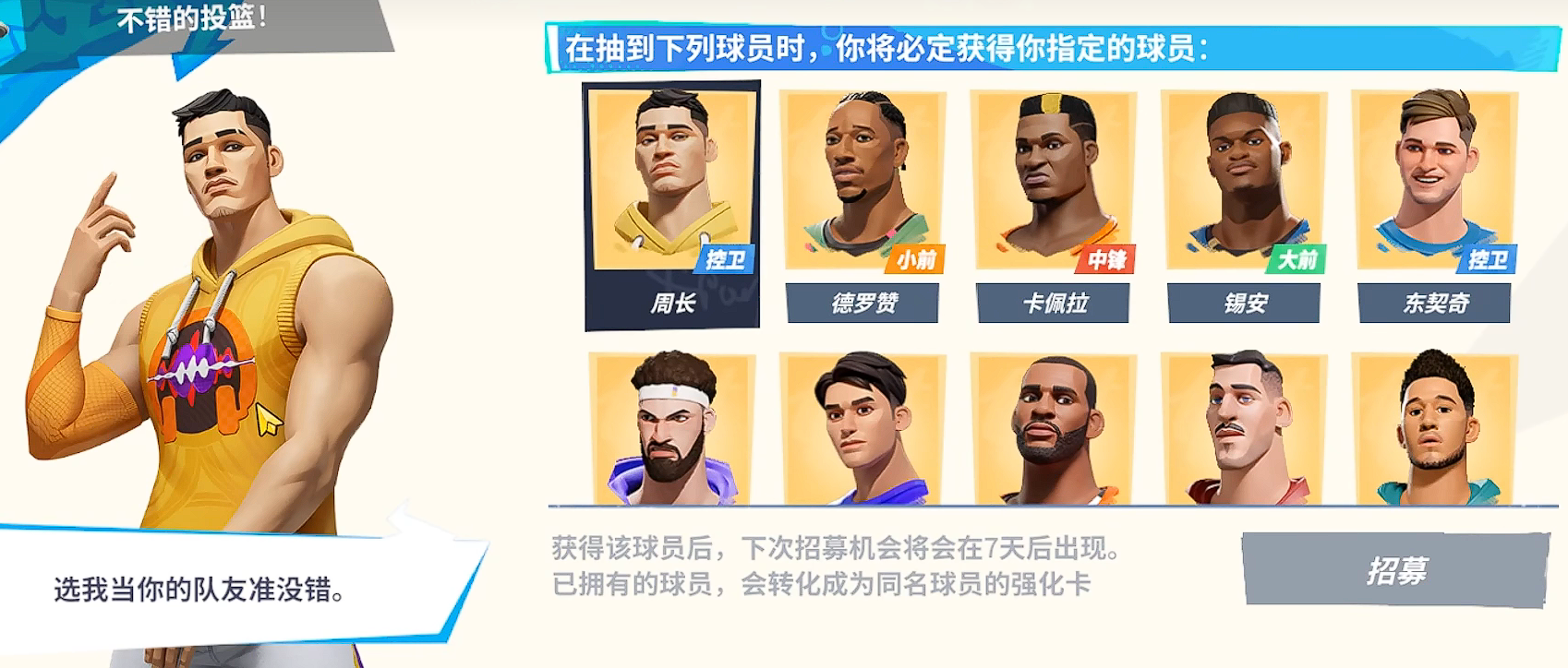 某种意义上算是新手福利,不过,后期的一些限定池子中的角色是不会进入这个定向招募的,需要特别注意一下。但实际体验游戏中定向的十个角色在内测时期还算可以,就比如说周长,单打能力就相当出色,很推荐各位玩家们作为主力使用。