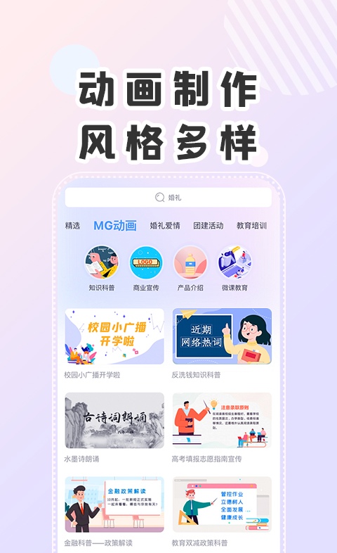 不用自己手动去剪辑视频就可以制作出视频,原因就是有非常多的视频模板可以直接套用,多种风格可以满足大家的工作需求和日常需求,像教师节、六一儿童节朗诵视频等等全都可以制作。